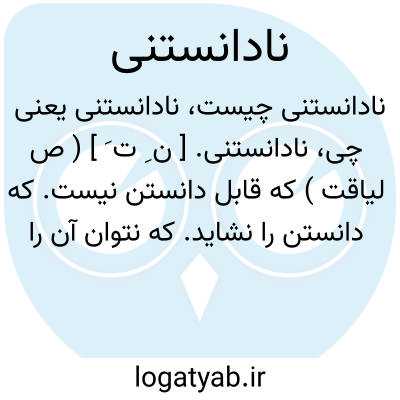 نادانستنی. [ ن ِ ت َ ] ( ص لیاقت ) که قابل دانستن نیست. که دانستن را نشاید. که نتوان آن را دانست.که غیرقابل فهم است: سخن از چهار نوع است، یکی نادانستنی و نگفتنی. ( منتخب قابوسنامه ص 46 ).