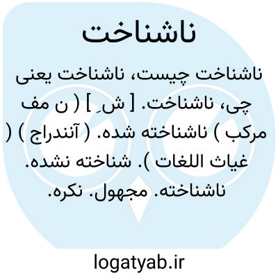 ناشناخت. [ ش ِ ] ( ن مف مرکب ) ناشناخته شده. ( آنندراج ) ( غیاث اللغات ). شناخته نشده. ناشناخته. مجهول. نکره. غیرمعلوم. ( ناظم الاطباء ). || غریب. ناشناس. ضد معروف. تنها. بی آشنا: