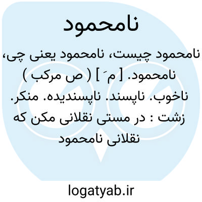 نامحمود. [ م َ ] ( ص مرکب ) ناخوب. ناپسند. ناپسندیده. منکر. زشت: در مستی نقلانی مکن که نقلانی نامحمود بود. ( قابوسنامه ). و استقبال مقدم مرا چنین ذخیره ای نامحمود و شربتی ناگوار مهیا کرده. ( سندبادنامه ص 124 ). واجب است مکافات مساعی نامحمود و تحریضات نابرجایگاه در باب او تقدیم کردن. ( سندبادنامه ص 93 ). به مکافات این کردار نامحمود بلائی بر من و فرزندمن نازل گردد. ( سندبادنامه ص 153 ). و از روی انصاف بر منکرات افعال خاصه آنچه تعلق به اهل و حرم داشته باشد در همه عادات نامحمود است. ( جهانگشای جوینی ).