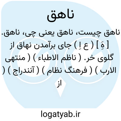 ناهق. [ هَِ ] ( ع اِ ) جای برآمدن نهاق از گلوی خر. ( ناظم الاطباء ) ( منتهی الارب ) ( فرهنگ نظام ) ( آنندراج ) ( از اقرب الموارد ) ( از المنجد ). مخرج نهاق از حلق حمار. مخرج آواز حمار. ج، نواهق. || حمار. ( معجم متن اللغة ). خر. ( فرهنگ خطی ). خر نر. ( غیاث اللغات از منتخب و صراح ). || تندی در رخسار اسب و خر و جز آن که مجرای اشک در آن است. ( ناظم الاطباء ). ج، نواهق. رجوع به ناهقان شود. || ( ص ) آواز حمار برکشنده. ( فرهنگ نظام ) ( آنندراج ). نهق الحمار؛ صوت کشهق، فهو ناهق. ( اقرب الموارد ) ( المنجد ). آنکه نهیق آرد. عرعرکننده.