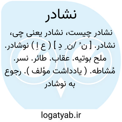 نشادر. [ ن ُ /ن ِ دِ ] ( ع اِ ) نوشادر. ملح بوتیه. عقاب. طائر. نسر. مُشاطه. ( یادداشت مؤلف ). رجوع به نوشادر شود.