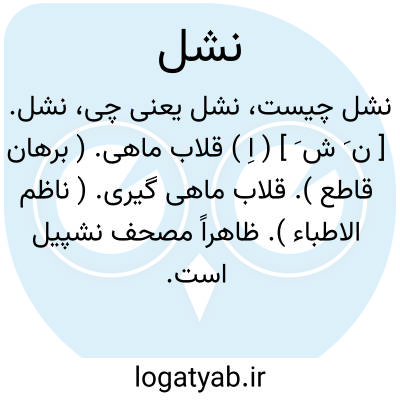 نشل. [ ن َ ش َ ] ( اِ ) قلاب ماهی. ( برهان قاطع ). قلاب ماهی گیری. ( ناظم الاطباء ). ظاهراً مصحف نشپیل است. ( حاشیه برهان چ معین ). || ( اِمص ) دو چیز را برهم دوختن و چسبانیدن. دو چیز را با هم کوفتن. ( برهان قاطع ). پیوستگی چیزی به چیزی. ( ناظم الاطباء ). گرفتن و آویختن. ( برهان قاطع ). آویختگی. آویزش. ( ناظم الاطباء ). چنگ درزدن و چسبیدن و درآویختن به چیزی که عربان تشبث گویند.( برهان قاطع ). چنگ برزدن و درآویختن به چیزی و آن را به تازی تشبث گویند. ( آنندراج ) ( از جهانگیری ) ( انجمن آرا ). درآویختن از جائی. ( اوبهی ). درآویختگی. تشبث. ( ناظم الاطباء ). رجوع به نشلیدن شود. || ( فعل امر ) و امر به این معانی باشد یعنی: دو چیز رابا هم بدوز و بچسبان و بکوب ! و بگیر و بیاویز! ( برهان قاطع ). || ( اِ ) معلق. ( ناظم الاطباء ).