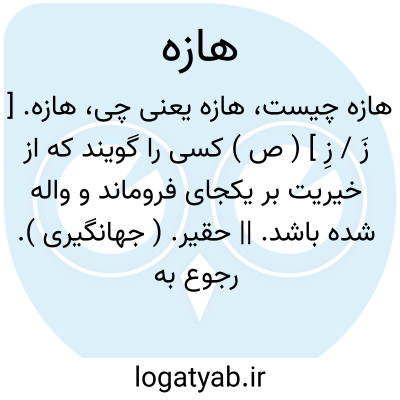 هازه. [ زَ / زِ ] ( ص ) کسی را گویند که از خیریت بر یکجای فروماند و واله شده باشد. || حقیر. ( جهانگیری ). رجوع به هاژ و هاژو و هاژه شود.