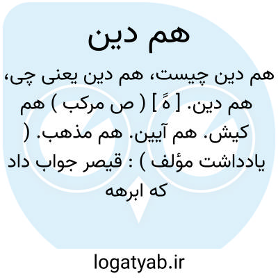 هم دین. [ هََ ] ( ص مرکب ) هم کیش. هم آیین. هم مذهب. ( یادداشت مؤلف ): قیصر جواب داد که ابرهه همدین ماست وما بر همدینان خویش سپاه نفرستیم. ( تاریخ بلعمی ).