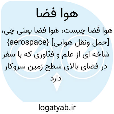 {aerospace} [حمل ونقل هوایی] شاخه ای از علم و فنّاوری که با سفر در فضای بالای سطح زمین سروکار دارد