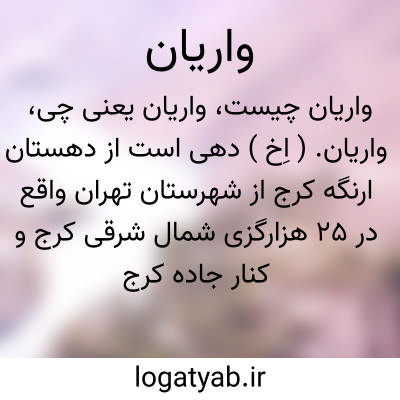 واریان. ( اِخ ) دهی است از دهستان ارنگه کرج از شهرستان تهران واقع در 25 هزارگزی شمال شرقی کرج و کنار جاده کرج به چالوس در دره رود کرج. ناحیه ای است سردسیر و دارای 1068 تن سکنه است. آب آن از رود کرج و چشمه سار تأمین میشود و محصول آن غلات و میوه و لبنیات و عسل و دارای باغهای میوه است. شغل اهالی زراعت و گله داری و کرباس بافی و گیوه سازی است دارای دبستان و راه ماشین رو است. ( از فرهنگ جغرافیائی ایران ج 1 ).