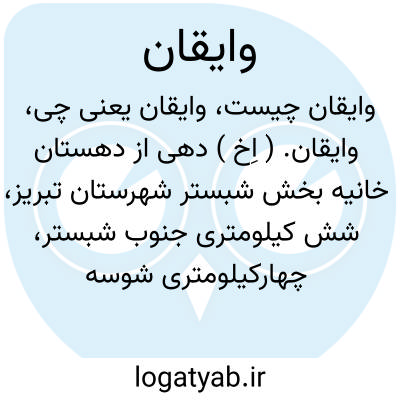 وایقان. ( اِخ ) دهی از دهستان خانیه بخش شبستر شهرستان تبریز، شش کیلومتری جنوب شبستر، چهارکیلومتری شوسه صوفیان و سلماس. جلگه ای و هوای آن معتدل است. دارای 2800 تن سکنه شیعه. آب آن از چشمه تأمین می شود و محصول آنجا غلات و حبوبات و شغل اهالی زراعت و گله داری و راه آن مالرو است. ( از فرهنگ جغرافیایی ایران ج 4 ): گفت شخصی... از کوههای مرند و وایقان پیش شیخ یعقوب می آید. ( تاریخ مبارک غازانی، رشیدالدین فضل اﷲ چ کارل یان ص 152 ).