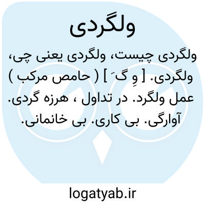 ولگردی. [ وِ گ َ ] ( حامص مرکب ) عمل ولگرد. در تداول، هرزه گردی. آوارگی. بی کاری. بی خانمانی.