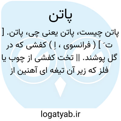 پاتن. [ ت َ ] ( فرانسوی، اِ ) کفشی که در گل پوشند. || تخت کفشی از چوب یا فلز که زیر آن تیغه ای آهنین از طول هست و آنرا برای لغزیدن و سُریدن روی یخ بزیر کفش بندند و این کار نوعی ورزش زمستانی است.