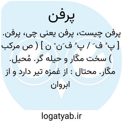 پرفن. [ پ ُ ف َ / پ ُ ف َن ْ ن ] ( ص مرکب ) سخت مکّار و حیله گر. مُحیل. مکّار. محتال:
