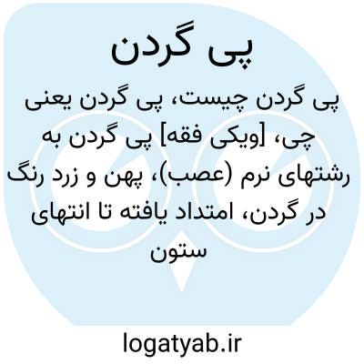 [ویکی فقه] پی گردن به رشته‏ای نرم (عصب)، پهن و زرد رنگ در گردن، امتداد یافته تا انتهای ستون فقرات گفته می شوداز آن در باب اطعمه و اشربه یاد شده است.