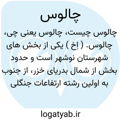چالوس. ( اِخ ) یکی از بخش های شهرستان نوشهر است و حدود بخش از شمال بدریای خزر، از جنوب به اولین رشته ارتفاعات جنگلی، از خاور بدهستان کران بخش حومه نوشهر و از باختر به دهستان لنگااز شهرستان تنکابن محدود میباشد. هوای این بخش مانند سایر نقاط ساحلی معتدل و مرطوب بوده در تابستان گرم و بواسطه ازدیاد پشه ناسالم است و اکثر سکنه تابستان را به دهستانهای کلاردشت، بیرون بشم و کوهستان که هوای آنجا سردسیر است میروند. قسمت های شمال خاور و باختر دشت تا ساحل دریا اراضی زراعتی است و قسمت جنوبی کوهستانی و پوشیده از جنگل انبوه و به میان بند مشهور میباشد. از جنگل های اینجا زغال و چوب بسیار به تهران حمل میشود. مرکز این بخش شهر چالوس و قراء تابعه آن 36 آبادی بزرگ و کوچک است که عموماً در قسمت باختری رودخانه چالوس واقع و به دهستان قشلاق کلارستاق مشهورند. جمعیت این بخش با سکنه شهر 15 هزارنفر است.قراء این بخش از رودخانه های چالوس و سرداب رود مشروب میشوند و محصول عمده اش برنج و لبنیات و مرکبات و مختصر ابریشم است. ( از فرهنگ جغرافیائی ایران ج 3 ).