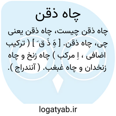 چاه ذقن. [ هَِ ذَ ق َ ] ( ترکیب اضافی، اِ مرکب ) چاه زنخ و چاه زنخدان و چاه غبغب. ( آنندراج ). چاه زنخ و چاه زنخدان. ( فرهنگ نظام ). کنایه از گوی خرد که در زنخدان و غبغب خوبان میباشد.( آنندراج ). مجازاً گود کوچکی که در چانه کسی باشد.( فرهنگ نظام ). رجوع به چاه زنخ و چاه زنخدان شود.