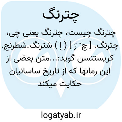 چترنگ. [ چ َ رَ ] ( اِ ) شترنگ.شطرنج. کریستنسن گوید:...متن بعضی از این رمانها که از تاریخ ساسانیان حکایت میکند و در آخرین قرن سلطنت این دودمان تألیف یافته، موجود است ولی نگارش آن از قرون بعد از انقراض ساسانی است، مانند «کارنامک اردشیری پاپکان » و «ماذیگان ی چترنگ » [ قصّه بازی شطرنج ]. ( از تاریخ ایران در زمان ساسانیان ص 77 ).