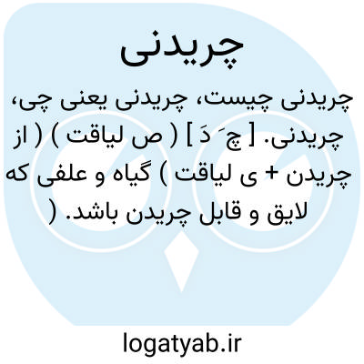 چریدنی. [ چ َ دَ ] ( ص لیاقت ) ( از چریدن + ی لیاقت ) گیاه و علفی که لایق و قابل چریدن باشد. ( ناظم الاطباء ). سبزه و گیاهی که چریدن را شاید. رجوع به چریدن و چراندنی شود.