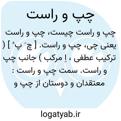 چپ و راست. [ چ َ پ ُ ] ( ترکیب عطفی، اِ مرکب ) جانب چپ و راست. سمت چپ و راست: