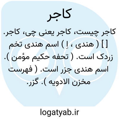 کاجر. [ ] ( هندی، اِ ) اسم هندی تخم زردک است. ( تحفه حکیم مؤمن ). اسم هندی جزر است. ( فهرست مخزن الادویه ). گزر. زردک. هویج. این کلمه در زبان اردو به صورت «گاجرا» آمده. رجوع بکاجرا و فرهنگ رازی ص 78شود.