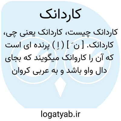 کاردانک. [ ن َ ] ( اِ ) پرنده ای است که آن را کاروانک میگویند که بجای دال واو باشد و به عربی کروان خوانند.( برهان ) ( آنندراج ). و رجوع به لغت «کاروانک » شود.