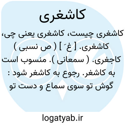 ( صفت ) منسوب به کاشغر: [ ایا شکسته سر زلف ترک کاشغری شکنج تو علم پر نیان شوشتری ]. ( عنصری ) ۲ - پدید آمده در کاشغر محصول کاشغر: سرو کاشغری مشک کاشغری.