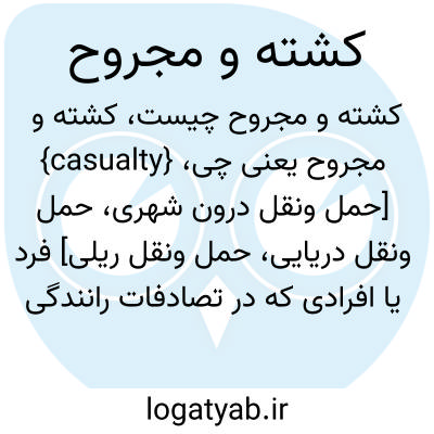 {casualty} [حمل ونقل درون شهری، حمل ونقل دریایی، حمل ونقل ریلی] فرد یا افرادی که در تصادفات رانندگی مجروح یا کشته می شوند
