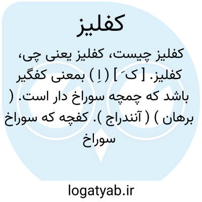 کفلیز. [ ک َ ] ( اِ ) بمعنی کفگیر باشد که چمچه سوراخ دار است. ( برهان ) ( آنندراج ). کفچه که سوراخ سوراخ باشد. ( ازغیاث ). مغرفه. مقدحه. مصوب. ( منتهی الارب ). کپچلاز. کفچه لیز. چمچه. مذوبه. ( یادداشت مؤلف ):