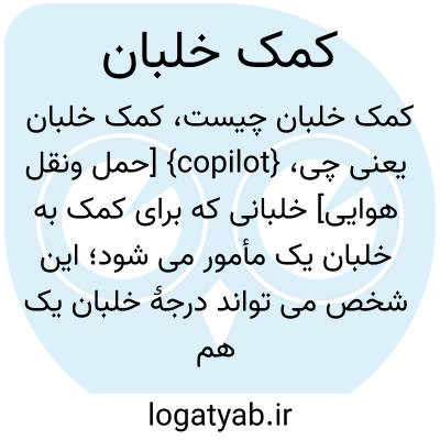 {copilot} [حمل ونقل هوایی] خلبانی که برای کمک به خلبان یک مأمور می شود؛ این شخص می تواند درجۀ خلبان یک هم داشته باشد