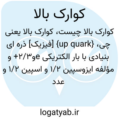 {up quark} [فیزیک] ذره ای بنیادی با بار الکتریکی eو2/3+ و مؤلفه ایزوسپین 1/2 و اسپین 1/2 و عدد باریونی 1/3