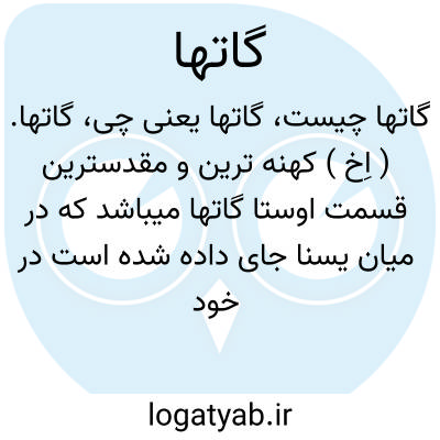 گاتها. ( اِخ ) کهنه ترین و مقدسترین قسمت اوستا گاتها میباشد که در میان یسنا جای داده شده است در خود اوستا گاثا و در پهلوی گاس آمده و جمع آن گاسان میباشد و گاسانیک ترکیب صفتی آن است یعنی مربوط به گاتها در پهلوی نیز بطور خصوصی هر فرد از اشعار گاتها را ( گاس ) گویند در سانسکریت هم این کلمه گاثا میباشد. در کتب مذهبی بسیار کهن برهمنی و بودایی گاتا عبارت است از قطعات منظومی که در میان نثر باشد. گاثای اوستا نیز اصلاً چنین بوده است و به مناسبت موزون بودن است که بخش مزبور، گاتها ( یعنی سرود و نظم و شعر ) نامیده شده است. از زمان بسیار قدیم، ایرانیان گاثا را از سخنان فرخنده خود وخشور زرتشت سپنتمان میدانستند لذا احترامی خاص برای آن قائل بودند ولی تحقیقات دانشمندان مانند میه ثابت کرده است که همه سرودهای گاثها از زرتشت نیست و از آن میان برخی پرداخته نخستین پیروان او میباشد در اوستای عهد ساسانیان گاتا در سر نخستین نسک گاسانیک که موسوم بود به ستوت یشت جای داشت در یسنای 57 بند 8 آمده: «ما می ستائیم فرخنده سروش را، کسی که نخستین بار پنج گاتهای زرتشت سپنتمان مقدس را بسرود.کلیه گاتها 17 هائتی ( فصل ) است و شامل 238 قطعه و 896 بیت و 5560 کلمه میباشد. این اشعار قدیمترین آثاری است که از روزگار پیشین برای ما تا امروز باقیمانده است. گاتها از حیث صرف و نحو و زبان و فکر با دیگر قسمتهای اوستا فرق دارد و نیز بسا لغاتی که در آن استعمال شده در دیگر بخشها نیامده و مطابق آنها را در قدیمترین کتب مذهبی برهمنان باید جست. گاتها روزی جزو کتاب بسیار بزرگی بوده و لابد همان است که مورخ یونانی هرمیپوس از آن سخن رانده است. نظر بمعنی گاتهادر کتب برهمنان و بودائیان گاتهای اوستا را نیز باید در قدیم جزو مطالب منثوری تصور کرد که امروز در دست نیست. برای آنکه مطالب را مختصر کرده به شکلی درآورند که مردم بتوانند به حافظه بسپرند متوسل به شعر میشدند. این طرز نگارش بویژه در میان اقوام هند و اروپائی متداول بوده است. گاتهای اوستا شامل پنج قسمت است و بمنزله پنج کتاب اسفار تورات است که یهودیان آنها را از خود موسی دانسته احترام خاصی برای آنها منظور دارند. نخستین موسوم است به «اهنود»، دوم موسوم است به «اشتود»، سوم به نام «سپنتمد»، چهارم موسوم به ( وهوخشتر ) و پنجمین گاتها به ( وهشتواشت ) نامزد است. رجوع به گات شود. ( مزدیسنا، دکتر معین صص 127 - 128 ). و رجوع به گاتهای پورداود شود. کریستن سن در فصل سوم ( آئین زردشتی دین رسمی کشور ) نویسد: که هر ماه سی روز است. که نام آنها مأخوذ از اسامی ایزدان است هفت روز اول ماه بترتیب بنام اوهرمزد و شش امهراسپندان نامیده میشود؛ بعد از ماه آخر پنج روز اندر گاه ( خمسه مسترقه ) بر 360 روز سال اضافه میکردند و هر یک از این پنج روز را به نام یکی از گاتاهای پنجگانه میخواندند. ( ترجمه ایران در زمان ساسانیان ص 110 ).