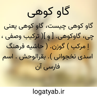 گاوکوهی. [ وِ ]( ترکیب وصفی، اِ مرکب ) گوزن. ( حاشیه فرهنگ اسدی نخجوانی ). بقرالوحش. اسم فارسی آن گاو کوهی است. ایّل: گوشت گاو کوهی غلیظ باشد. ( ذخیره خوارزمشاهی ).