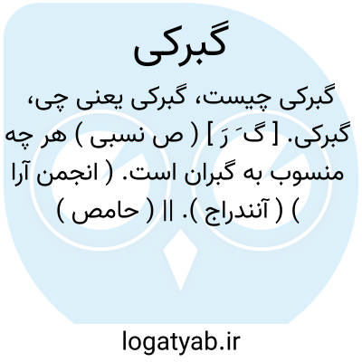 ره گبرکی درنوشتندشان.فردوسی.و زردشت حکیم در عهد وشتاسف آمد و کیش گبرکی آورد. ( فارسنامه ابن بلخی ص 49 ). و چون دین گبرکی که زردشت آوردقبول کردند. ( فارسنامه ابن بلخی ص 50 ). ابولؤلؤ... از ری قاشان بود از دیهی فین و بر گبرکی بایستاد. ( مجمل التواریخ و القصص ). هر رهی که جز ره مسلمانی است از جهودی و گبرکی و ترسایی... ( تفسیر ابوالفتوح رازی ج 2 ص 356 ). قتاده گفت در این آیت، دینها پنج است:اربعة، للشیطان، و واحد للرحمن، چهار دیو راست و یکی خدای راست. و آن چه خدای راست مسلمانی است و آنچه دیو راست این چهارگانه است، از جهودی و ترسایی و گبرکی و مشرکی... ( تفسیر ابوالفتوح از مزدیسنا دکتر معین ص 285 ). و همچنانکه گبرکان گویند که کیخسرو بنمرد وبه آسمان شد و زنده است و بزیر آید و کیش گبرکی تازه کند. ( کتاب النقض ص 444 ). هر عاقل که به انصاف تأمل کند انکار نکند که در این اختیار مجبری به گبرکی بهتر مانندگی دارد که بر افضئی. ( کتاب النقض ص 446 )... پس مجبری بهتر میماند به گبرکی در این صورت... ( کتاب النقض ص 446 ). و چون درست شد که مذهب مجبران بگبرکی ماننده تر است در این صورت این قدر کفایت است و تمام. ( کتاب النقض ص 446 ). از اقاصی و أدانی بسیط زمین و اطراق عالم نقش گبرکی بر میداشت. ( کتاب النقض ص 534 ). تشبیه کردن این طریقه به گبرکی الا جحود محض و انکار صرف نباشد. ( کتاب النقض ص 19 ). اهالی آن را تکلیف کرد تا از کیش مطهر حَنفی با کیش نجس گبرکی آیند. ( جهانگشای جوینی ).