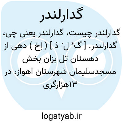 گدارلندر. [ گ ُ ل َ دَ ] ( اِخ ) دهی است از دهستان مرغا از بخش ایذه شهرستان اهواز، در 72هزارگزی باختری ایذه. کوهستانی معتدل و سکنه آن 150 تن می باشد. زبان اهالی فارسی بختیاری است. آب آن از چشمه. محصول آن غلات. شغل مردم زراعت است.راه مالرو دارد. ( از فرهنگ جغرافیایی ایران ج 6 ).