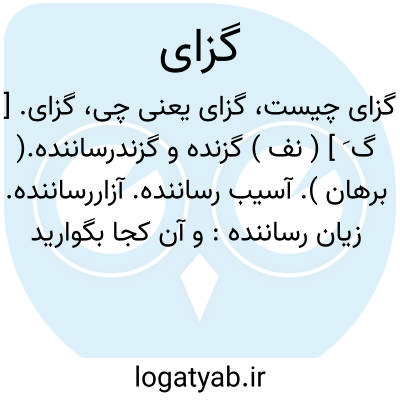 گزای. [ گ َ ] ( نف ) گزنده و گزندرساننده.( برهان ). آسیب رساننده. آزاررساننده. زیان رساننده: