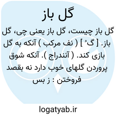 ( صفت ) ۱ - آنکه با گل بازی کند. ۲ - کسی که رغبت بپرورش گلهای نیکو دارد: ز بس صحن چمن از خند. گلزار خرم شد درو چون دست گلباز از هوا گل میتوان چیدن. ( عبدالرزاق فیاض )