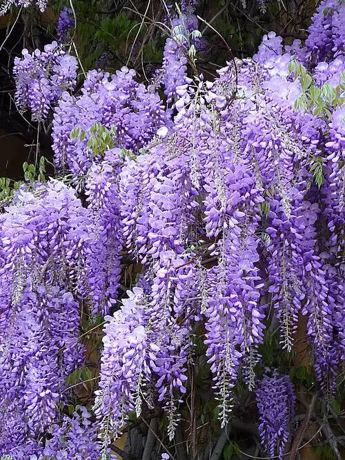 گروهی از درختچه های بالارونده، از خانوادۀ لوبیاسانان، از جمله Wisteria sinensis. این گونه بومی شرق ایالات متحد و آسیای شرقی است. این گیاهان خوشه های گل آویز سفید، آبی یا آبی کم رنگ دارند و برگ هایشان پنجه ای است. برگچه ها در هر دو سمت ساقه دیده می شوند. این گیاهان را برای تزیین در پای دیوارها می کارند.