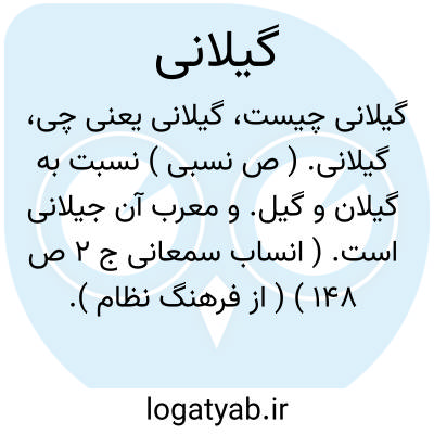 گیلانی. ( ص نسبی ) نسبت به گیلان و گیل. و معرب آن جیلانی است. ( انساب سمعانی ج 2 ص 148 ) ( از فرهنگ نظام ). رجوع به گیلان شود.