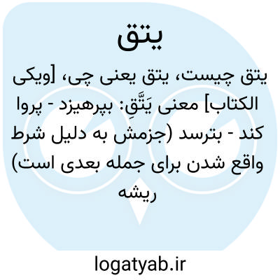 [ویکی الکتاب] معنی یَتَّقِ: بپرهیزد - پروا کند - بترسد (جزمش به دلیل شرط واقع شدن برای جمله بعدی است)