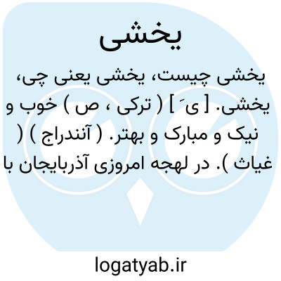 یخشی. [ ی َ ] ( ترکی، ص ) خوب و نیک و مبارک و بهتر. ( آنندراج ) ( غیاث ). در لهجه امروزی آذربایجان با الف بعد از یاء به صورت «یاخشی » و اغلب با تبدیل شین به «چ » به صورت «یاخچی » تلفظ کنند.