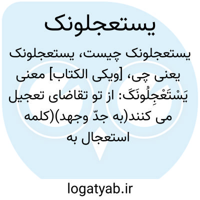 [ویکی الکتاب] معنی یَسْتَعْجِلُونَکَ: از تو تقاضای تعجیل می کنند(به جدّ وجهد)(کلمه استعجال به معنای این است که از دیگری بخواهی عجله کند، و او را بر انجام خواستهات تحریک کنی.)