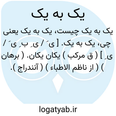 یک به یک. [ ی َ / ی ِ ب ِ ی َ / ی ِ ] ( ق مرکب ) یکان یکان. ( برهان ) ( از ناظم الاطباء ) ( آنندراج ). یکایک. ( ناظم الاطباء ). یک یک. ( ناظم الاطباء ) ( یادداشت مؤلف ). یکی یکی. به ترتیب. ( یادداشت مؤلف ). یکی پس از دیگری. یکی بعد از دیگری: