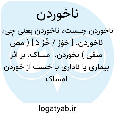 ناخوردن. [ خوَرْ / خُرْ دَ ] ( مص منفی ) نخوردن. امساک. بر اثر بیماری یا ناداری یا خست از خوردن امساک کردن: