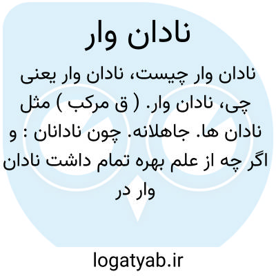 نادان وار. ( ق مرکب ) مثل نادان ها. جاهلانه. چون نادانان: و اگر چه از علم بهره تمام داشت نادان وار در آن خوضی می پیوست. ( کلیله و دمنه ).