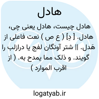 هادل. [ دِ] ( ع ص ) نعت فاعلی از هَدل. || شتر آونگان لفج یا درازلب را گویند. و ذلک مما یمدح به. ( از اقرب الموارد ) ( منتهی الارب ) ( آنندراج ) ( ناظم الاطباء ).