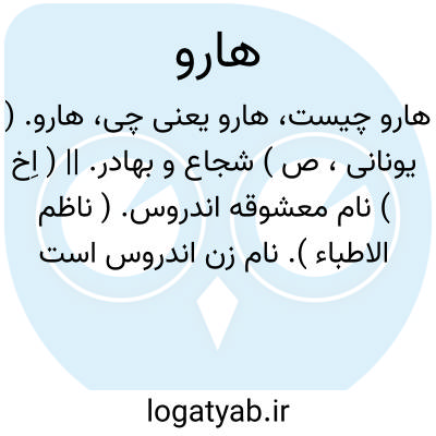 هارو. ( یونانی، ص ) شجاع و بهادر. || ( اِخ ) نام معشوقه اندروس. ( ناظم الاطباء ). نام زن اندروس است و هارو جزیره ای داشت در میان دریا و شبها آتش افروختی تا اندروس به فروغ آتش شناکنان آمدی وپیش هارو رفتی. یک شب بادی شد و آتش را بکشت و اندروس در میان دریا گم شد و بمرد. ( برهان ) ( آنندراج ).