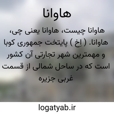 هاوانا. ( اِخ ) پایتخت جمهوری کوبا و مهمترین شهر تجارتی آن کشور است که در ساحل شمالی از قسمت غربی جزیره کوبابین َ9، ْ23 و َ22 و ْ82 طول غربی واقع شده. جمعیت آن بر طبق آمار سال 1951 م. 800000 تن بوده است این شهر از بنادر مهم و پر داد و ستد تجارتی بشمار میرودو هر سال مقدار فراوانی تنباکو و قند و قهوه از آنجا صادر میشود. هاوانا دارای ابنیه و عمارات زیبا و نو و تفرجگاهها و باغهای عمومی و مناظر دلکش است و یک دانشگاه و چندین مدرسه صنعتی و رصدخانه و پرورشگاههای متعدد و مؤسسات گوناگون خیریه در آن وجود دارد.هاوانا در سال 1514 م. بتوسط مرد دریانوردی به نام دیگوولاسکز کشف شده است. ( از دایرةالمعارف بریتانیکا ) ( از قاموس الاعلام ترکی ).