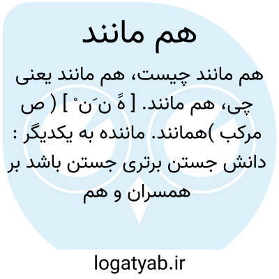 هم مانند. [ هََ ن َن ْ ] ( ص مرکب )همانند. ماننده به یکدیگر: دانش جستن برتری جستن باشد بر همسران و هم مانندان. ( قابوسنامه ).