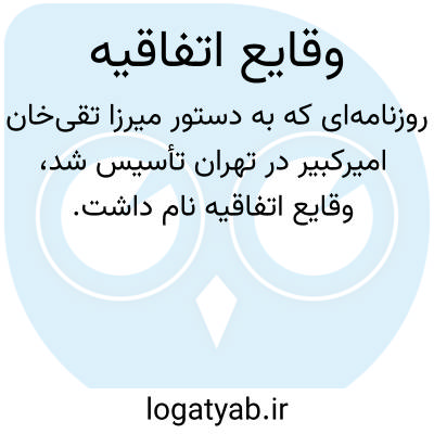 روزنامهای که به دستور میرزا تقیخان امیرکبیر در تهران تأسیس شد، وقایع اتفاقیه نام داشت. نخستین شمارهی این روزنامه در روز جمعه، پنجم ربیعالثانی سال ۱۲۶۷ ه.ق. منتشر گردید و پس از آن بهصورت هفتگی ادامه یافت. در صفحهی اول آن، نشان شیر و خورشید و عبارت یا اسدالله الغالب بهچشم میخورد. این روزنامه بهمدت ده سال بهطور منظم منتشر شد و از سال ۱۲۷۷ ه.ق. با مدیریت مرحوم میرزا ابوالحسن غفاری (صنیعالملک) کاشانی، به صورت روزنامهای مصور و با نام روزنامهی دولت علیهی ایران انتشار پیدا کرد.