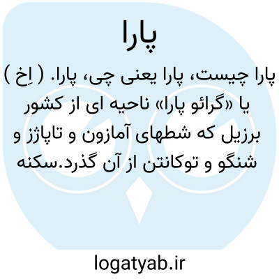 پارا. ( اِخ ) یا «گرائو پارا» ناحیه ای از کشور برزیل که شطهای آمازون و تاپاژز و شنگو و توکانتن از آن گذرد.سکنه آن 992000 تن است و جنگلهای دست ناخورده دارد و کائوچوک از آن برخیزد. عاصمه اش پارا یا بلم است.