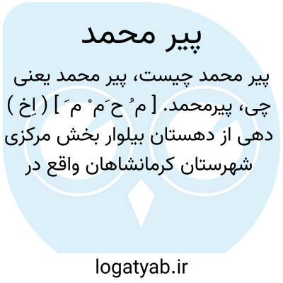پیرمحمد. [ م ُ ح َم ْ م َ ] ( اِخ ) دهی از دهستان بیلوار بخش مرکزی شهرستان کرمانشاهان واقع در 16هزارگزی شمال خاوری دیزگران و دو هزارگزی چنگزه. کوهستانی، سردسیر. دارای 156 تن سکنه آب آن از چشمه. محصول آنجا غلات و حبوبات و توتون و لبنیات مختصر و قلمستان. شغل اهالی زراعت و راه آن مالرو است. صنایع دستی قالیچه و جاجیم بافی. ( فرهنگ جغرافیایی ایران ج 5 ).