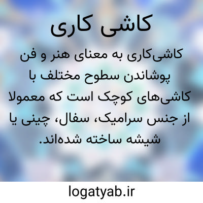 ۱ - عمل و شغل کاشی کار: [ مولانا حبیب شخصی خوش صحبت است... و شعر نیز نیکو میگوید و با این فضیلت در کاشی کاری نظیر خود ندارد ]. ( ترجم. مجالس النفایس ). توضیح صنعت ساختن کاشی و آن یکی از عالی ترین هنر هایی است که ایرانیان برای تزیین ابنیه ابداع کرده اند و بحدی در ابنیه و ساختمانهای مذهبی و شخصی ایران بعد از اسلام معمول شده که نمیتوان عمارت یا کاخی ایرانی را بدون آنکه کاشیهای زیبا با رنگ آمیزی عالی و اشکال ممتاز دیوار های آنرا زینت بخشد و شکل ایرانی خاص بان بدهد بتصور آورد. زیبا ترین کاشی هایی که در دور. اسلامی در ایران تهیه شده و از حیث صنعت قابل توجه است آجر های کوچکی است که با لعاب آبی رنگ پوشیده گردیده و در مسجد جامع شهر قزوین بکار گذاشته شده و متعلق به اوایل قرن ششم ه. ( دوازدهم م. ) است و چنانکه از کاشیهای مقبر. مومنه خاتون - در شهر نخجوان - که متعلق بسال ۵۸۲ ه. ق. ( ۱۱۸۲ م. ) است بر میاید این صنعت بسرعت ترقی کرده و در آخر قرن ششم رونقی بسزا یافت. در کاشی کاریهای ایرانی برای پوشاندن دیوار های عمارات اشکال زیبای بسیار بکار برده اند که از آن جمله است اشکال ستاره یی ساده که بیش از یک یا دو رنگ نداشته اند یا کاشیهای صلیبی شکل که غالبا سنگهای آبی فیروزه یی باز یا لاجوردی پر رنگ بود. غیر از اینها اشکال ستاره یی صلیبی را که با صورتهای انسانی و حیوانی و نباتی بسیار مزین بوده و مینا کاری بر رونق و درخشند گی و زیبایی آنها می افزوده است نیز در کاشیهای خود بکار برده اند. چنین مینماید که بکار بردن آجر های کاشی لعاب صدفدار و مینایی را ایرانیان از قرن پنجم ه. ( یازدهم م. ) ساخته اند. و در اوایل استعمال این نوع کاشی منحصر با بنی. بزرگ و مهم بود ولی در اواخر قرن ششم ه. ( دوازدهم م. ) ساختن این نوع ترقی بسیار کرده و از کاشان بشرهای دیگر ایران و نواحی شهر شرق فرستاده میشده. این صنعت همچنان تا نیم. قرن هشتم ه. ( چهاردهم م. ) رونق داشت و در هم. این مدت شهر کاشان بزرگترین مرکز آن بود. در شهرهای دیگر ایران مخصوصا در ری و سلطان آباد نیز تهیه میشده است ولی کاشیهای این دو شهر از کاشیهای ساخت کاشان پست تر بوده است. معرق کاری ( ترجم. صنایع ایران بعد از اسلام ۲ ) ۵۹ - ۵۷ - ( اسم ) بنایی که در آن کاشی نصب شده: [ صحن کاشی کاریش را گاه لنگر فوته بین هر که را باشد تمنا سیر صحن آشدار ]. ( اشرف )