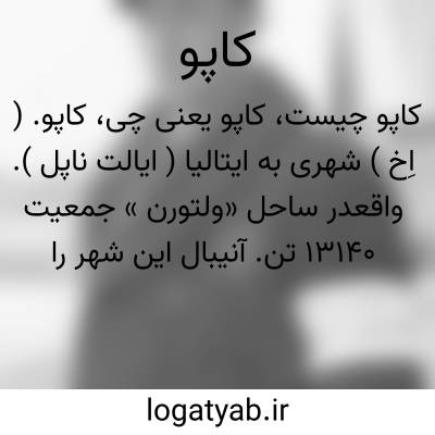 کاپو. ( اِخ ) شهری به ایتالیا ( ایالت ناپل ). واقعدر ساحل «ولتورن » جمعیت 13140 تن. آنیبال این شهر را به تصرف درآورد ( 215 ) آن را اقامتگاه زمستانی لشکریان خود قرار داد. و این شهر در قدیم لذت بخش ترین مقام در تمام نقاط ایتالیا بود و به همین سبب لشکر آنیبال بصفت «غرقه در لذائذ کاپو» متهم گردید و این اصطلاح چنین معنی میدهد: «اتلاف وقتی گرانبها در لذات ».